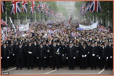 Beelden van The Mall: http://www.dailymail.co.uk/news/article-1381795/Royal-Wedding-kiss-Prince-William--Kate-Middleton-drive-away-vintage-Aston-Martin.html
